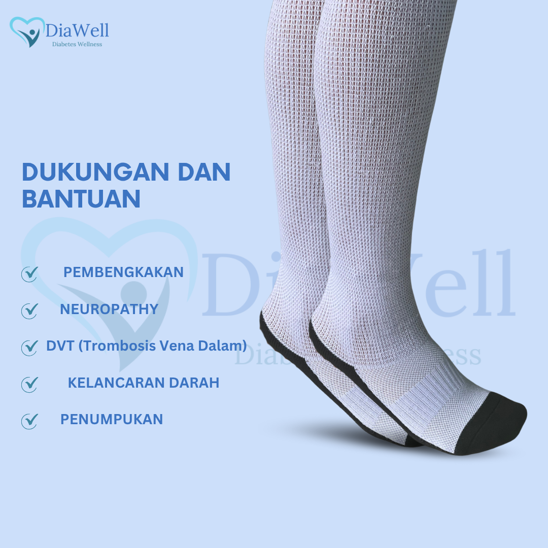 5. Perlindungan Ekstra untuk Kaki Penderita DiabetesMencegah luka atau terjadinya infeksi akibat gesekan berlebihan yang sering dialami penderita diabetes. Meningkatkan sirkulasi darah di kaki, mengurangi rasa nyeri atau kesemutan.